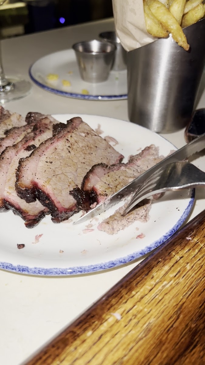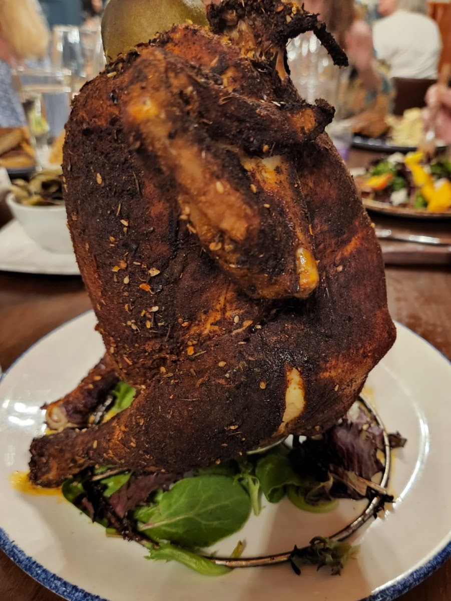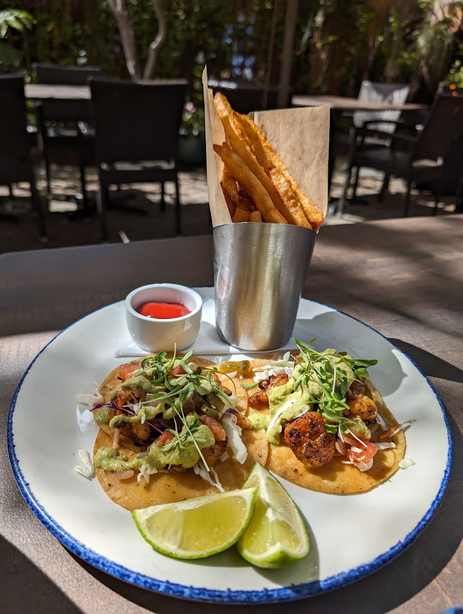The patio seating is at a garden making it dog friendly. It’s serene, with lots of shades. Great for lunch. Fried chicken is crispy and juicy (order it). Onion soup is particularly well seasoned and balanced (order it). Hanger steak is flavorful and tender (order it). French dip is made quite well. Fries are well cooked. Great service. Dessert is decent but not the greatest strength. Tacos are good but also not the greatest strength.