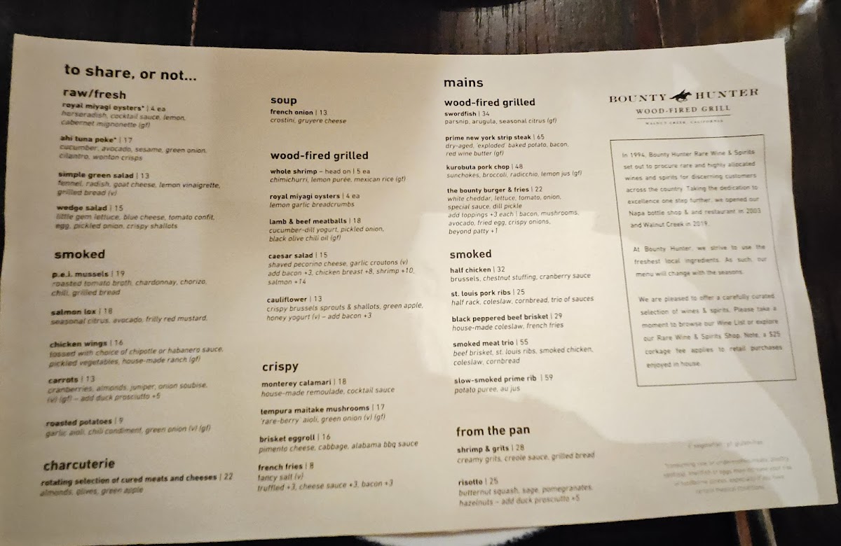 The menu at Bounty Hunter Walnut Creek reflects a thoughtful selection of approachable American fare paired with a carefully curated wine and cocktail list. It offers a balance of casual bites and more composed dishes, inviting guests to enjoy a meal that feels both familiar and refined.